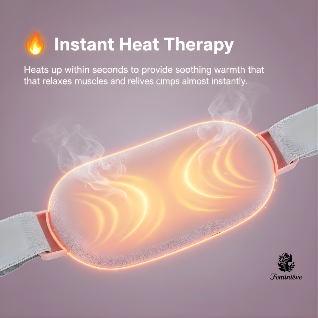Feel soothing warmth within seconds. The Feminieve Relief Belt relaxes your abdominal muscles, reduces cramps, and brings instant comfort — anytime, anywhere.