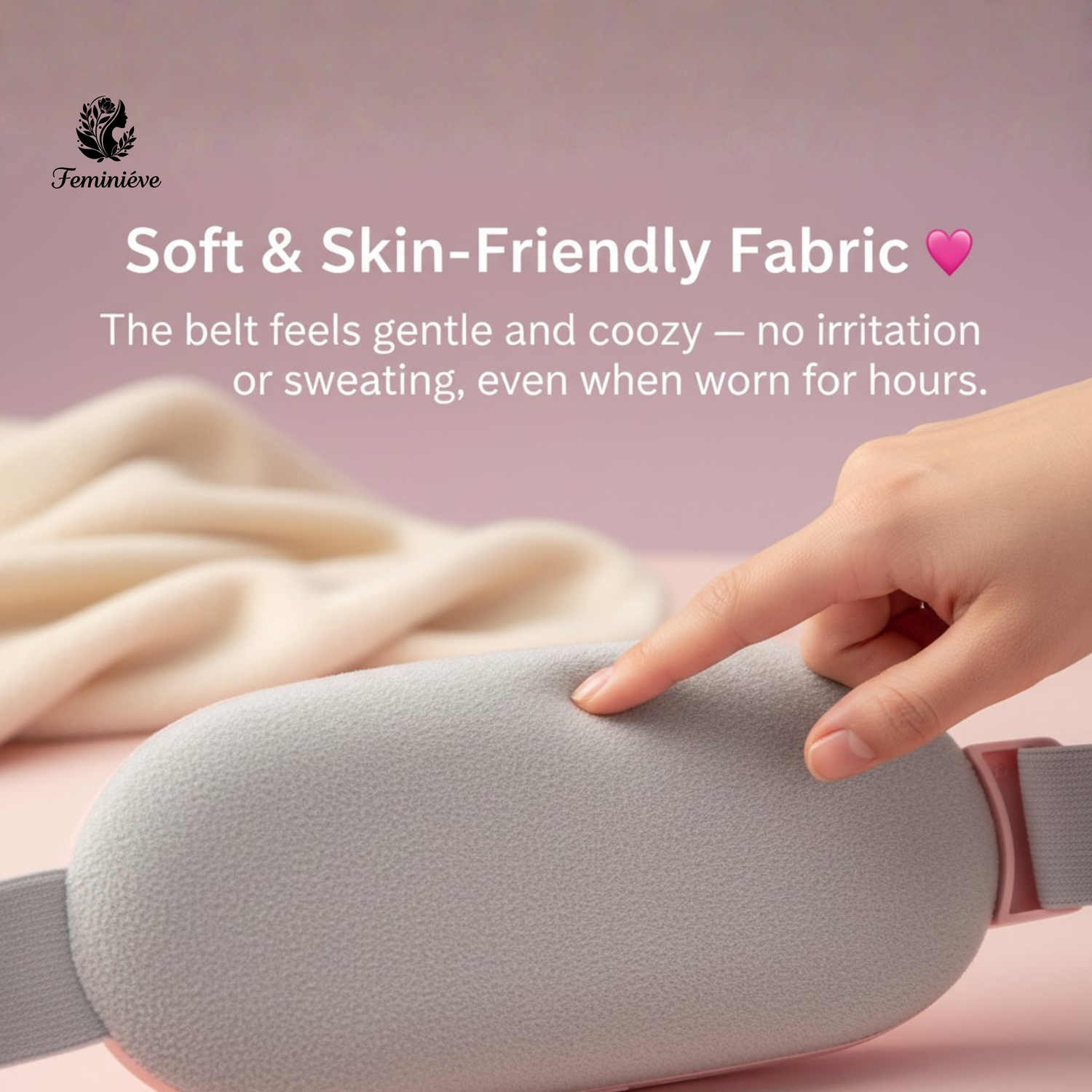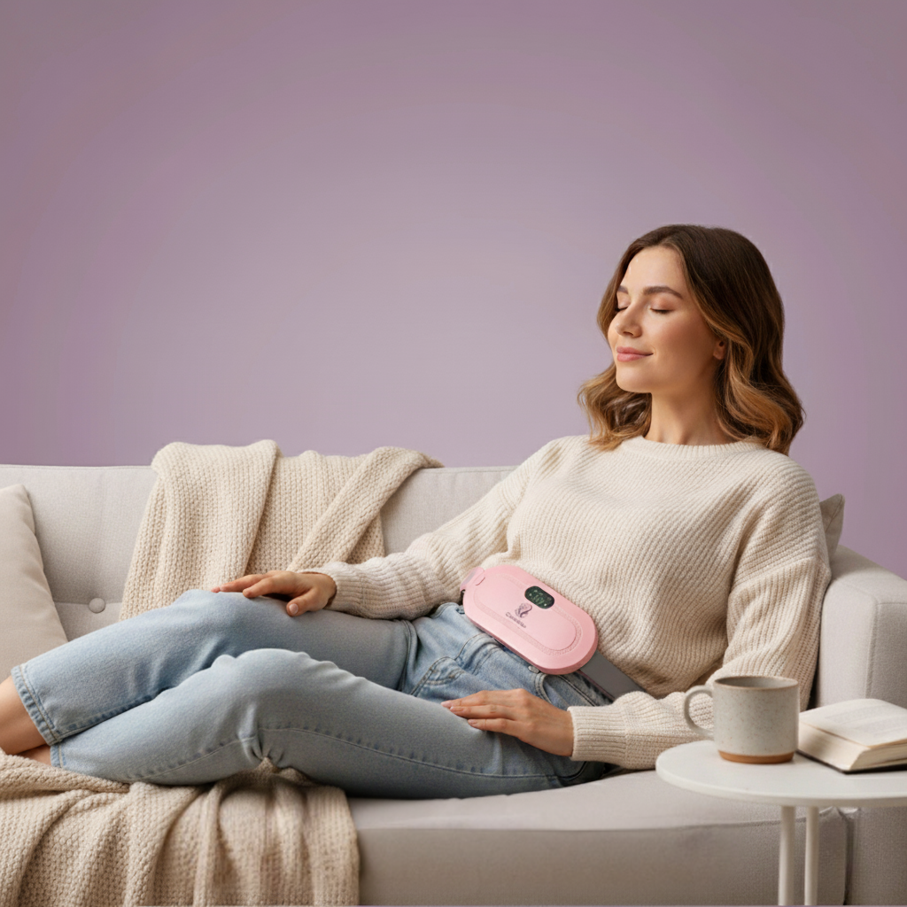 Feel soothing warmth within seconds. The Feminieve Relief Belt relaxes your abdominal muscles, reduces cramps, and brings instant comfort — anytime, anywhere.