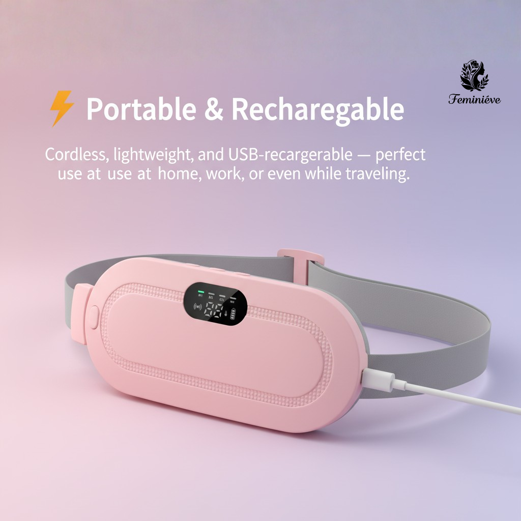 Your comfort shouldn’t depend on where you are. With a cordless, USB-rechargeable design, the Feminieve Belt is easy to carry and use wherever life takes you — at home, at work, or while traveling.